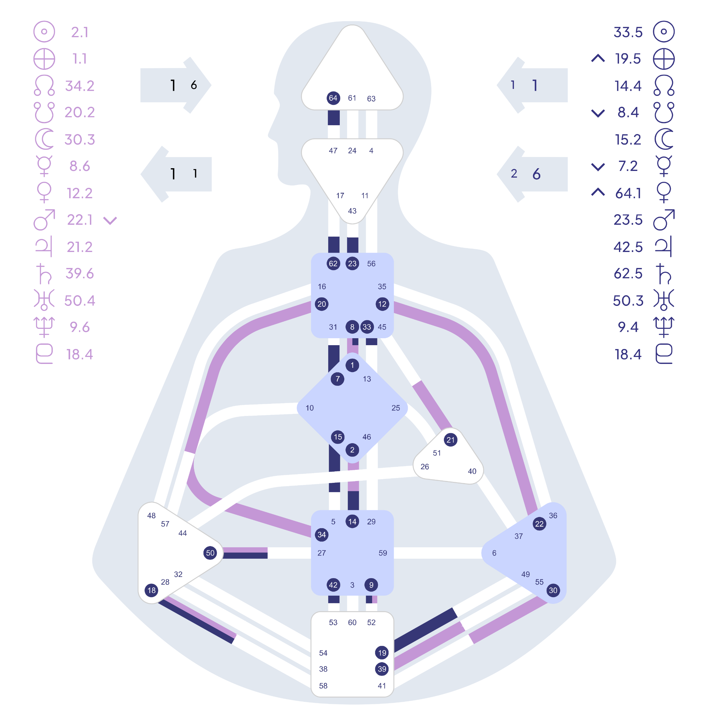 Aus deinen Geburtsdaten entsteht dein persönliches Chart. Du kannst es dir als eine Art energetische Landkarte vorstellen, die dir zeigt: